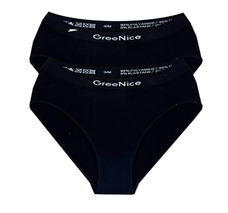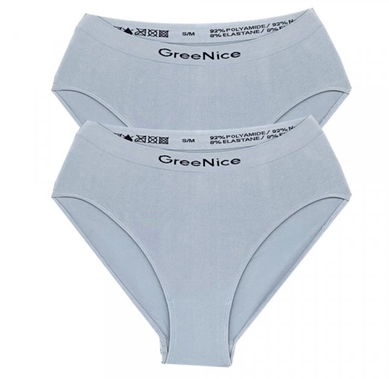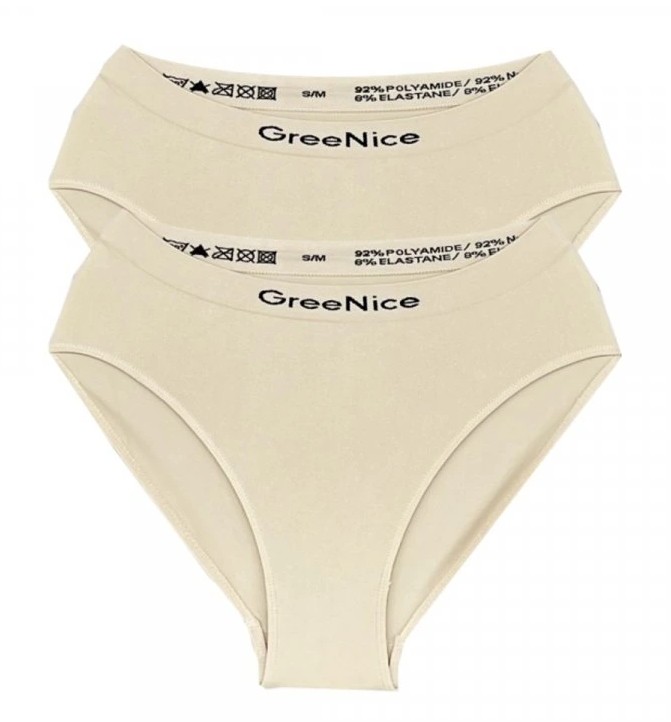 - Bezešvou technologií vytvořený elastický pas, ve kterém je vetkáno logo značky "GreeNice"